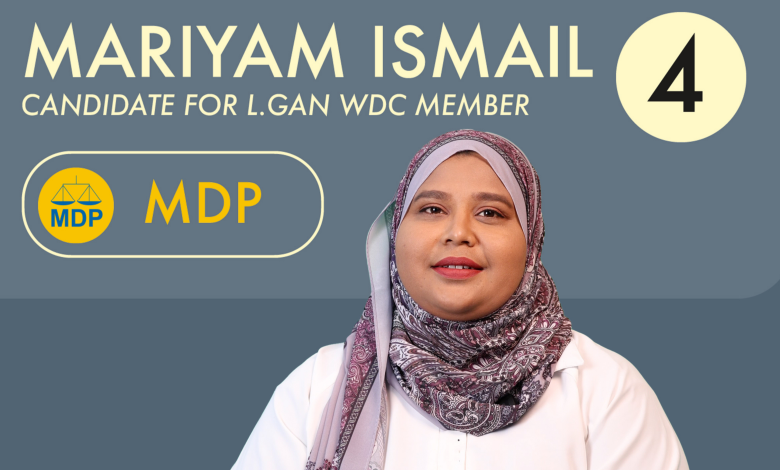 އެމްޑީޕީގެ ކެނޑިޑޭޓް ނަމްބަރ 4 މަރިޔަމް އިސްމާއީލް މިފަދައިން ވިދާޅުވީ ”ލާމު އެމްވީ“ އިން ލޯކަލް ކައުންސިލް އަދި އަންހެނުންގެ މަސައްކަތްކުރާ ކޮމެޓީގެ އިންތިހާާބާއި ދިމާކޮށް ކުރިއަށްގެންދާ ’ކެނޑިޑޭޓް 2026‘ ގެ އެޕިސޯޑް 1 ގައެވެ.