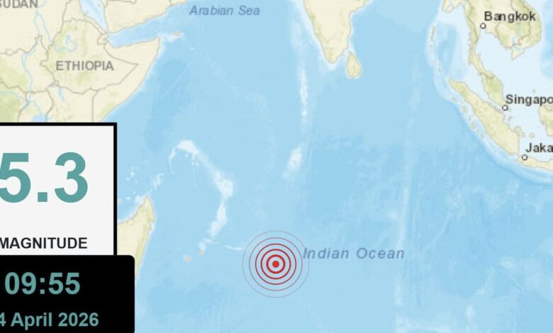 މެޓް އޮފީހުން ބުނީ، އައްޑުއާ 2،553 ކިލޯމީޓަރު ދުރުން މިޑް އިންޑިއަން ރިޖަށް 5.3 މެގްނިޓިއުޑްގެ ބިންހެލުމެއް އައިސްފައިވާ ކަމަށެވެ.