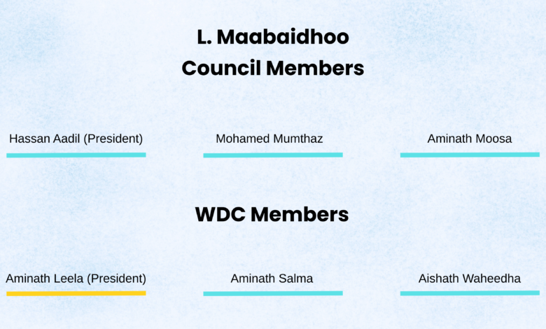 މާބާއިދޫ ކައުންސިލްގެ ރައީސް ކަމަށް އާދިލް؛ ޑަބްލިއުޑީސީގެ ރައީސާ ކަމަށް ލީލާ!